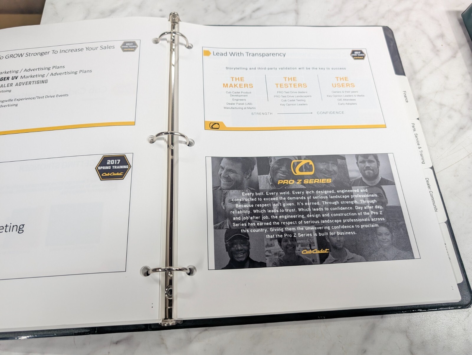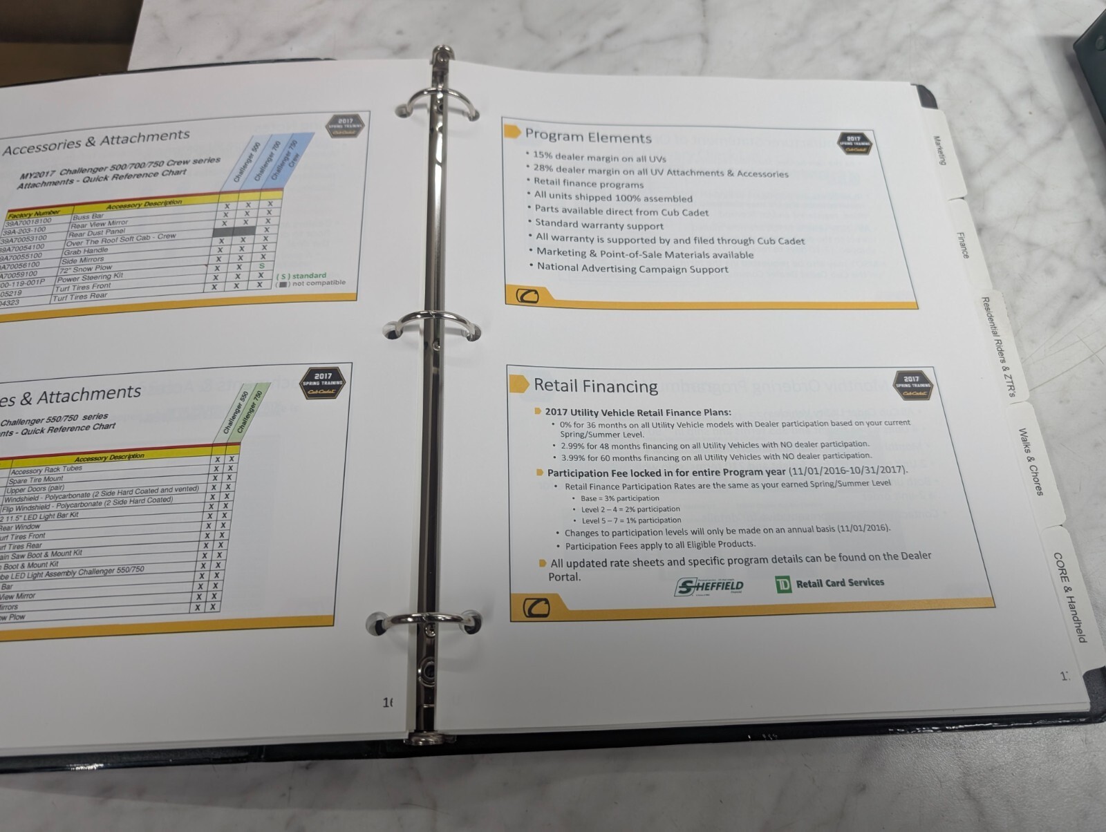 Cub Cadet 2017 Spring Training Manual Dealership Sales Information Guide Book