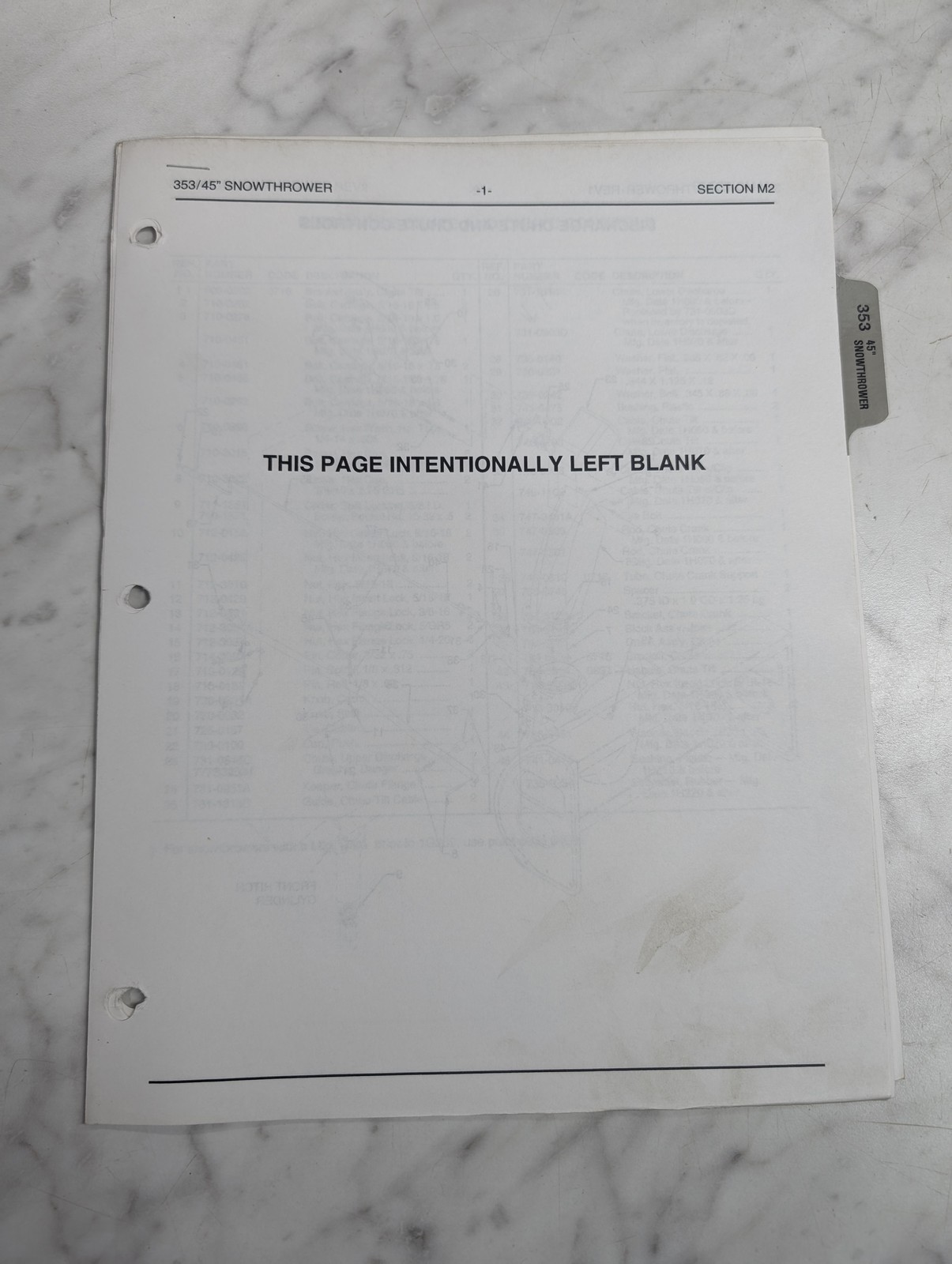 Cub Cadet Illustrated Parts List Book Manual Catalog 353 45” Snowthrower M2