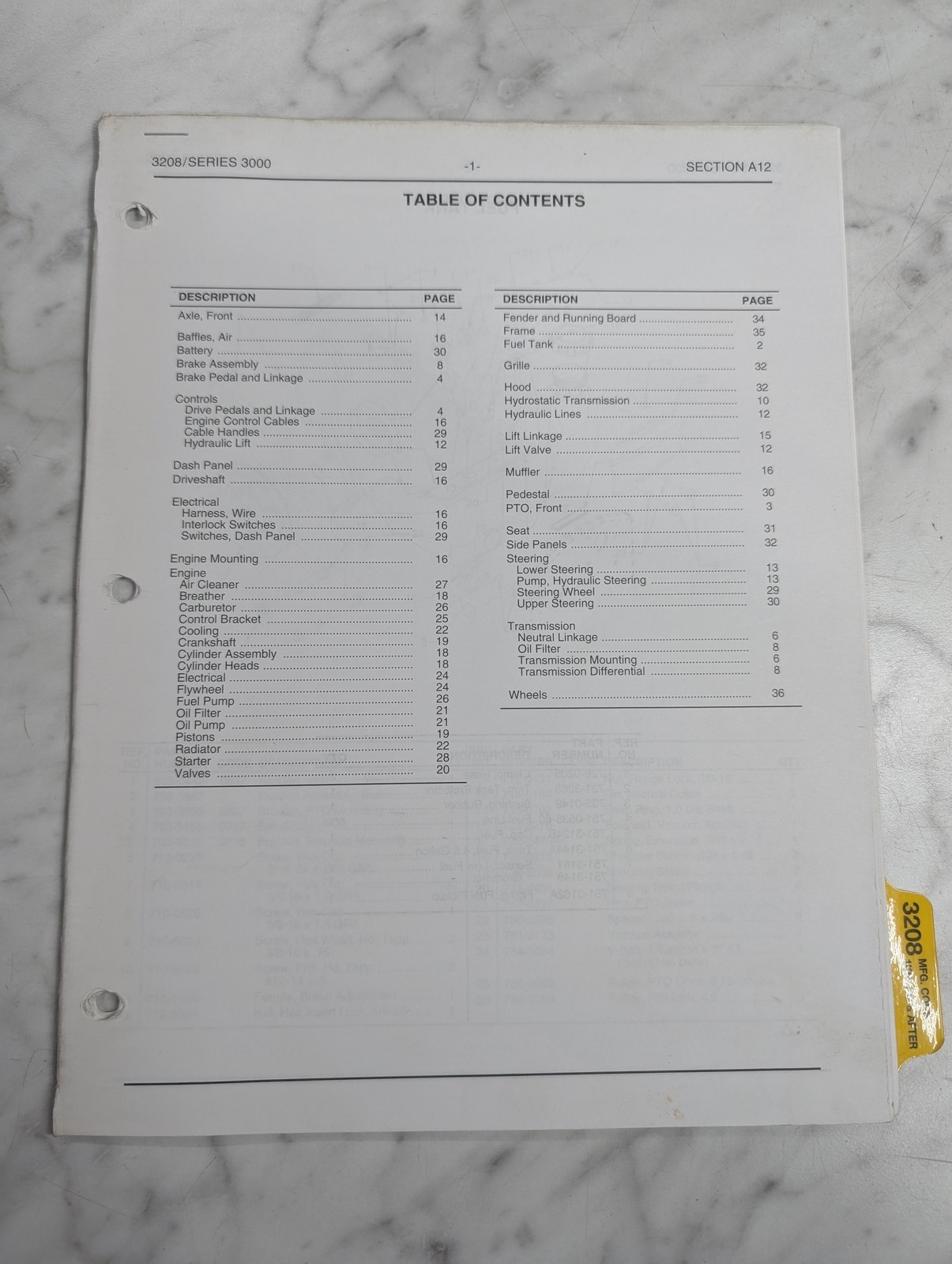 Cub Cadet Illustrated Parts List Manual 3208 3000 Series Tractor Section A12