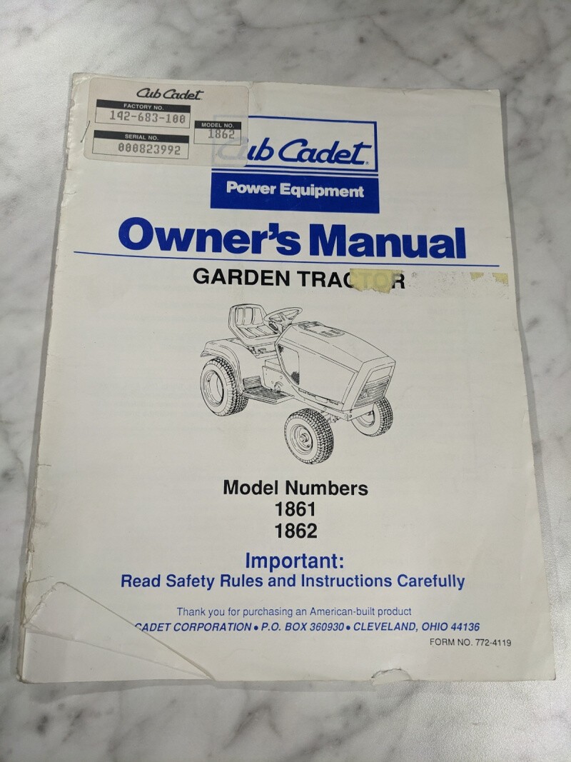 Cub Cadet Operator Owner Service Manual Garden Tractor 1861 1862 #772-4119