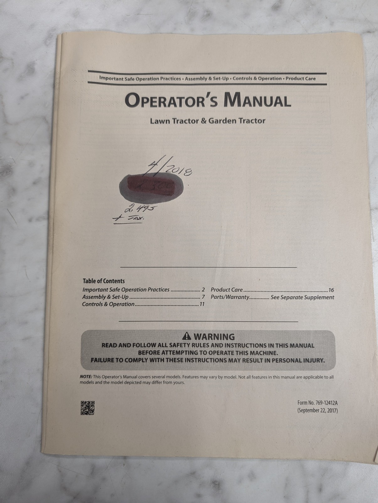 Cub Cadet Operator’S Owners Manual Lawn Garden Tractor 2017
