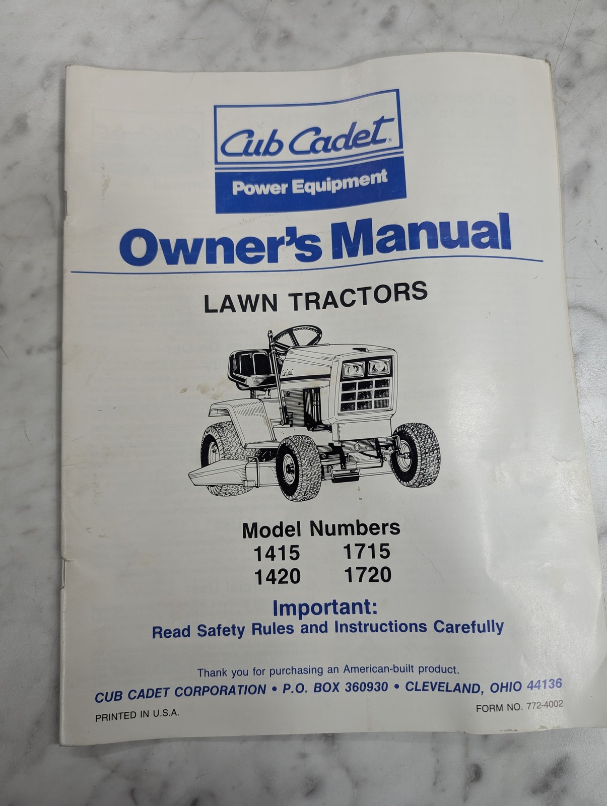 Cub Cadet Operator’S Owners Manual Lawn Tractor Lt 1415 1715 1420 1720