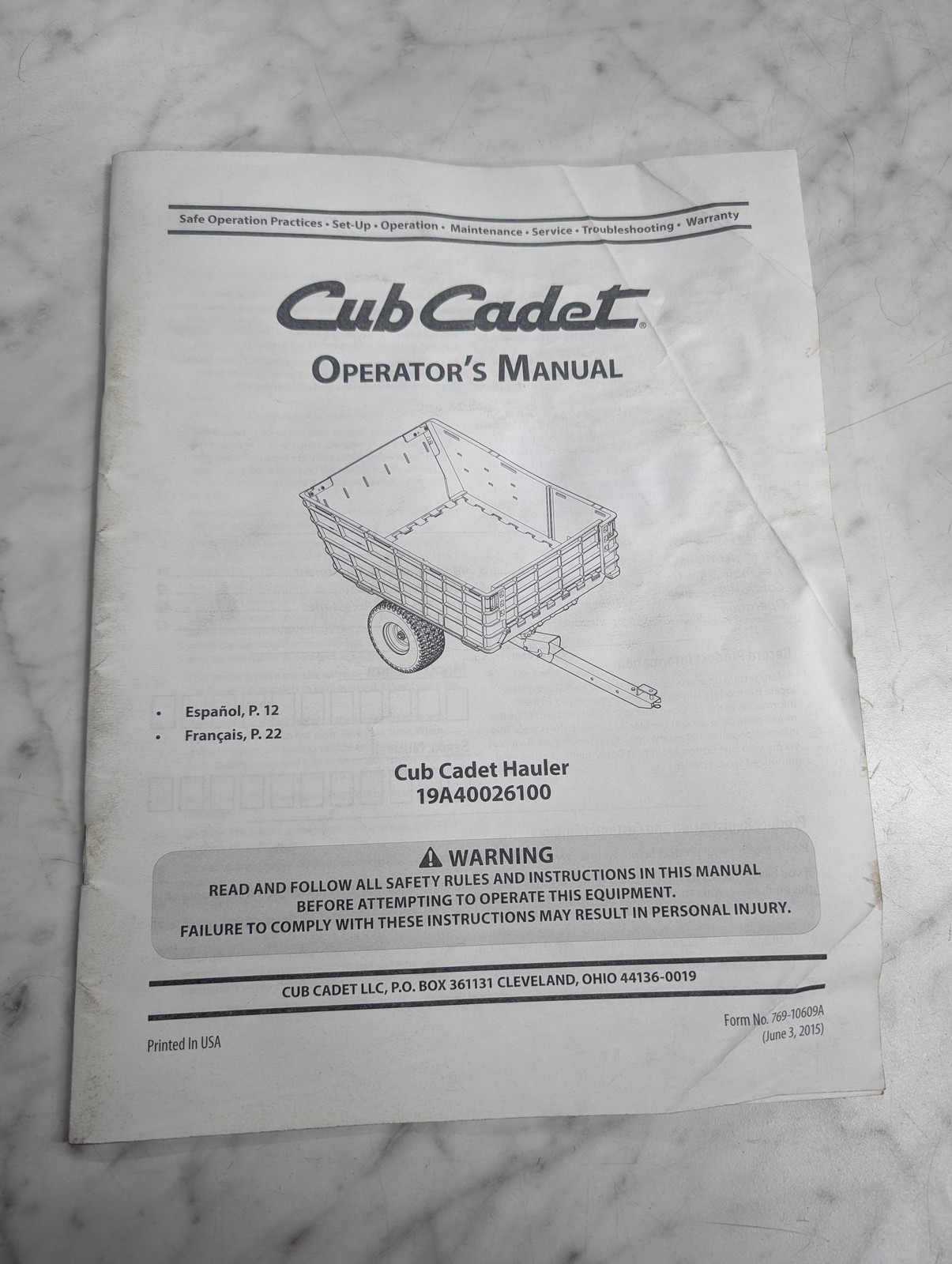 Cub Cadet Operator’S Service Manual Parts List Book Hauler 19B470026100 2015