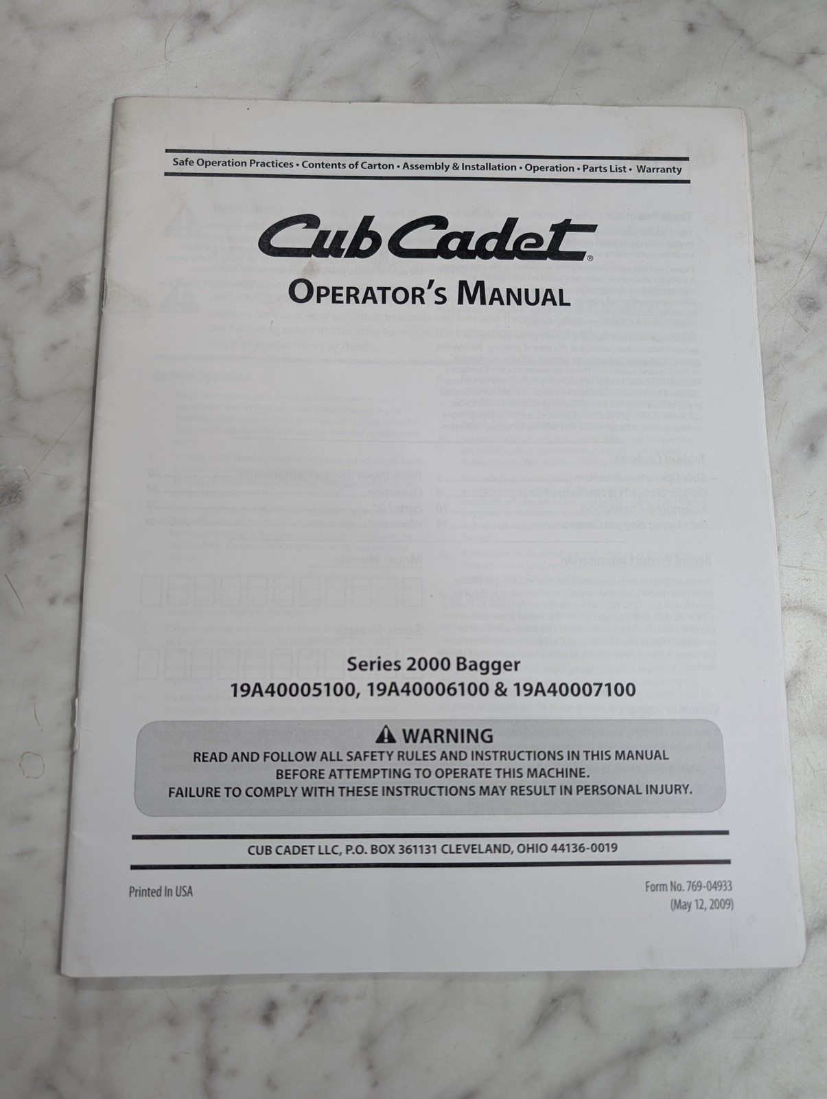 Cub Cadet Owners Operators Manual 2000 Series Bagger 19A40005100/6100/7100 2009