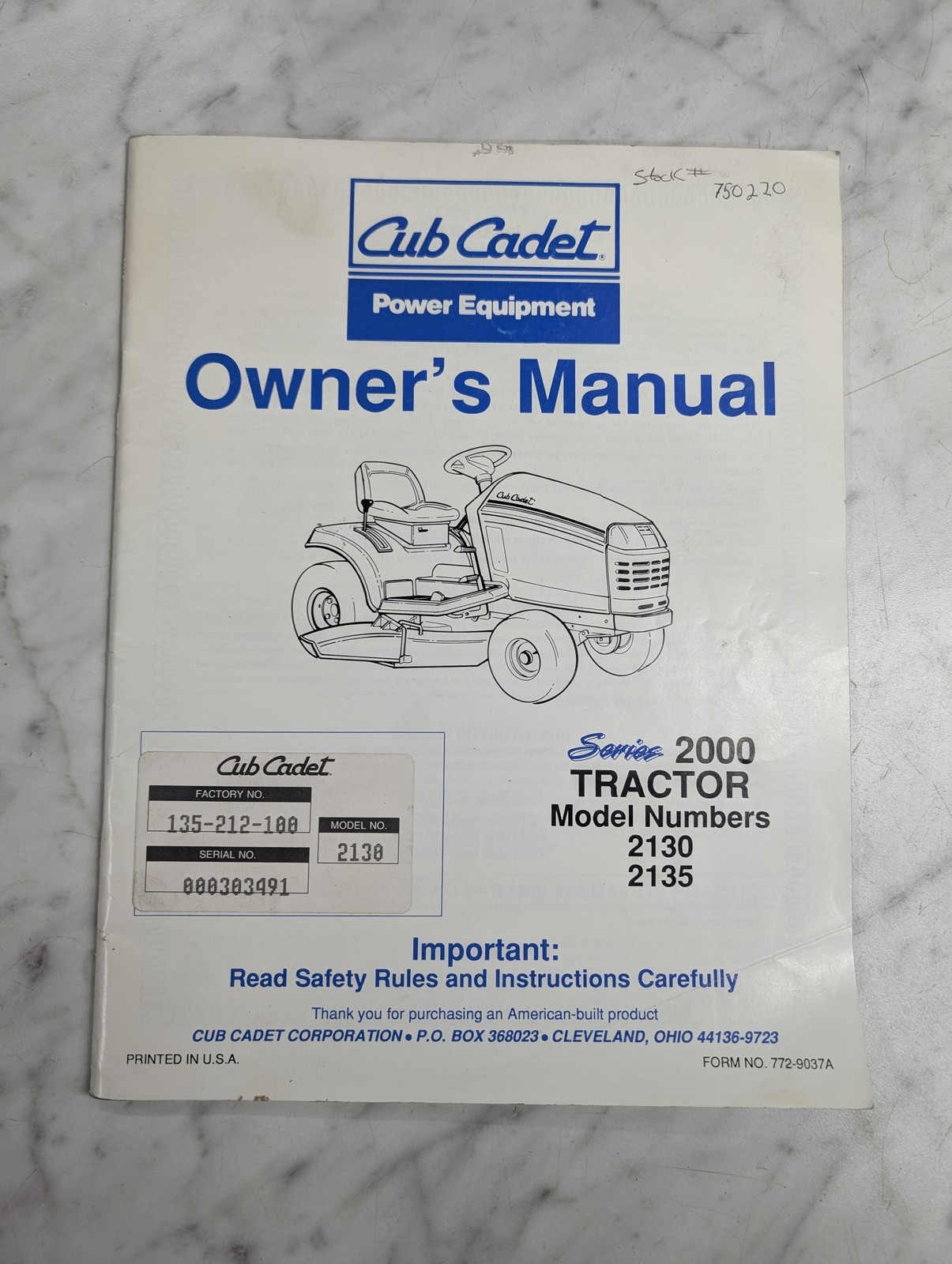 Cub Cadet Owner’S Operator’S Service Manual Series 2000 Tractor 2130 2135
