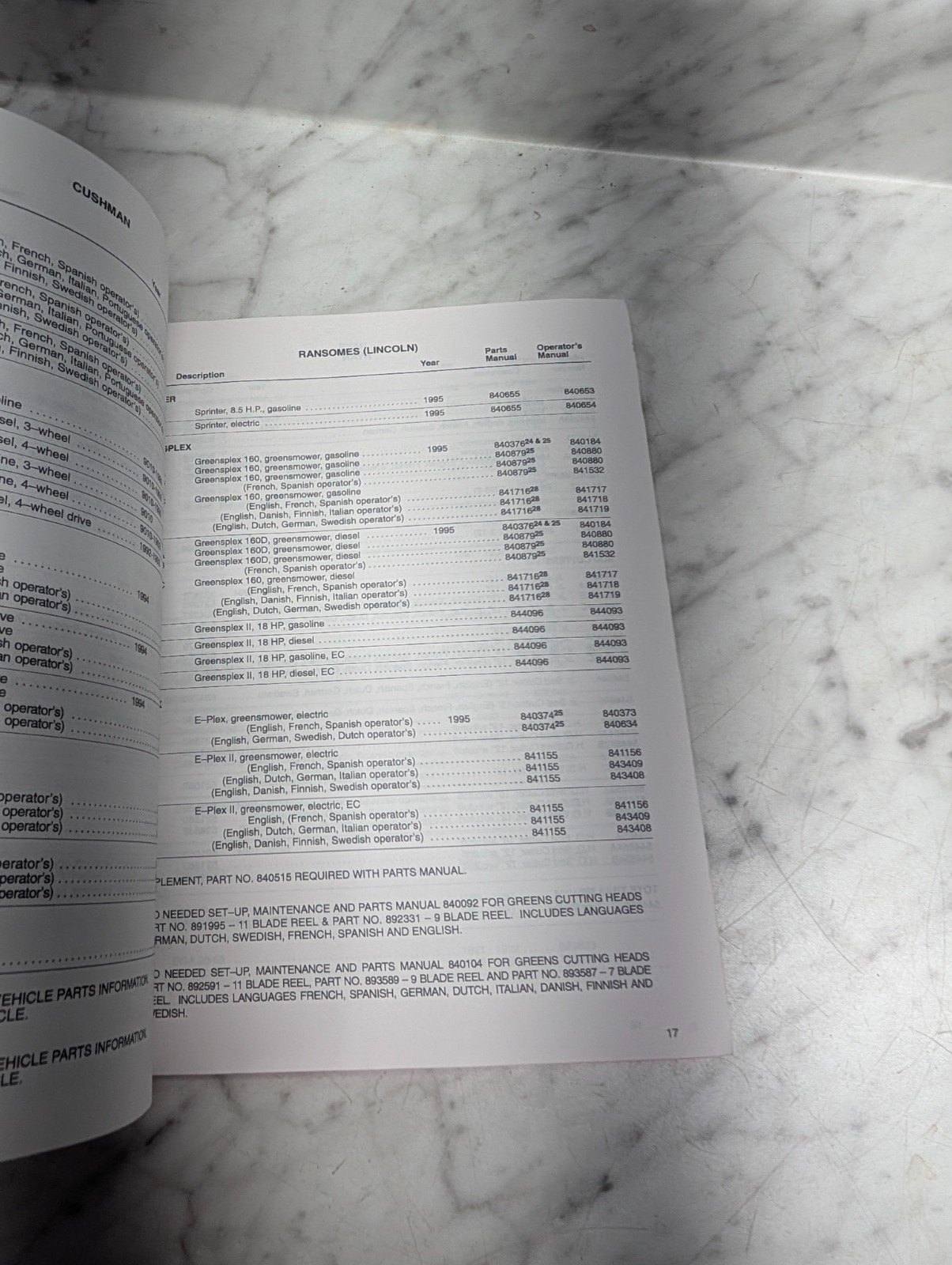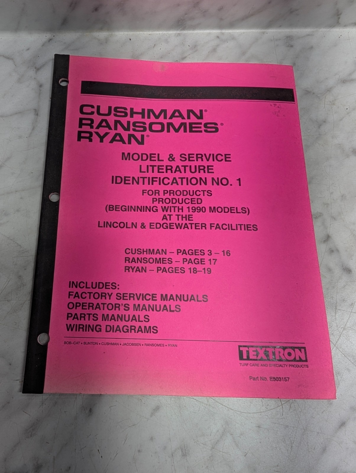 Cushman Ransomes Ryan Model & Service Literature Identification Manual Reference