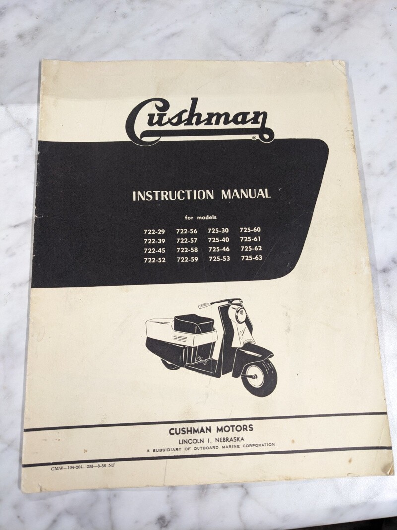 Cushman Scooter Owner Instruction Operator Service Manual Models 722 725 1958