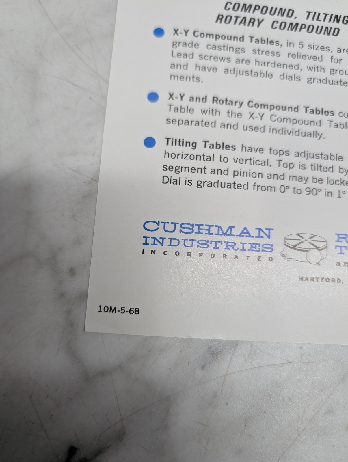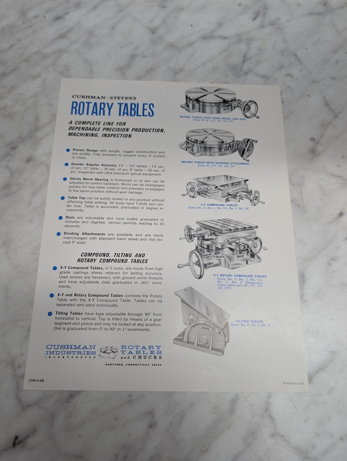 Cushman Stevens Rotary Tables Hand Wheel Dividing Models Sales Brochure