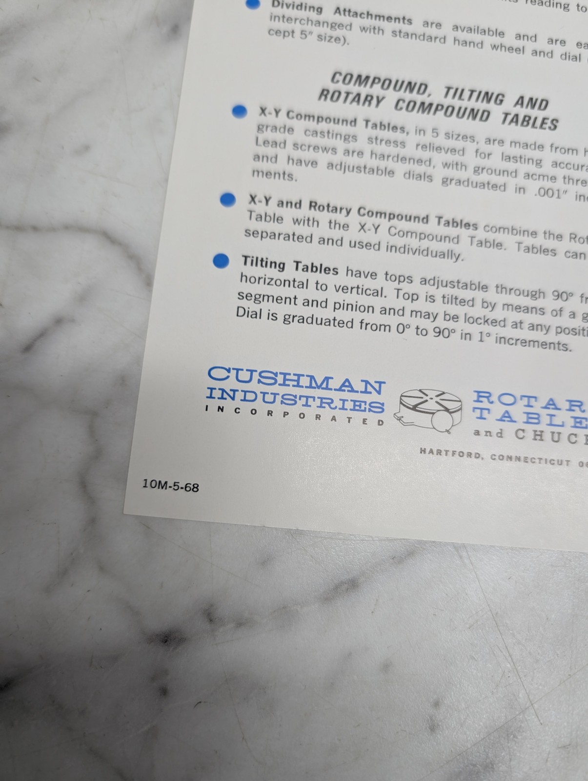 Cushman Stevens Rotary Tables Sizes 5 8 12 15 18 24 Hand Wheel Sales Brochure