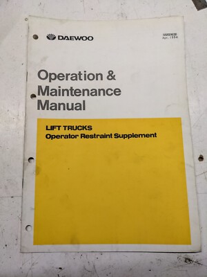 Daewoo Forklift Operation Maintenance Manual Lift Truck Operator Restraint 1994