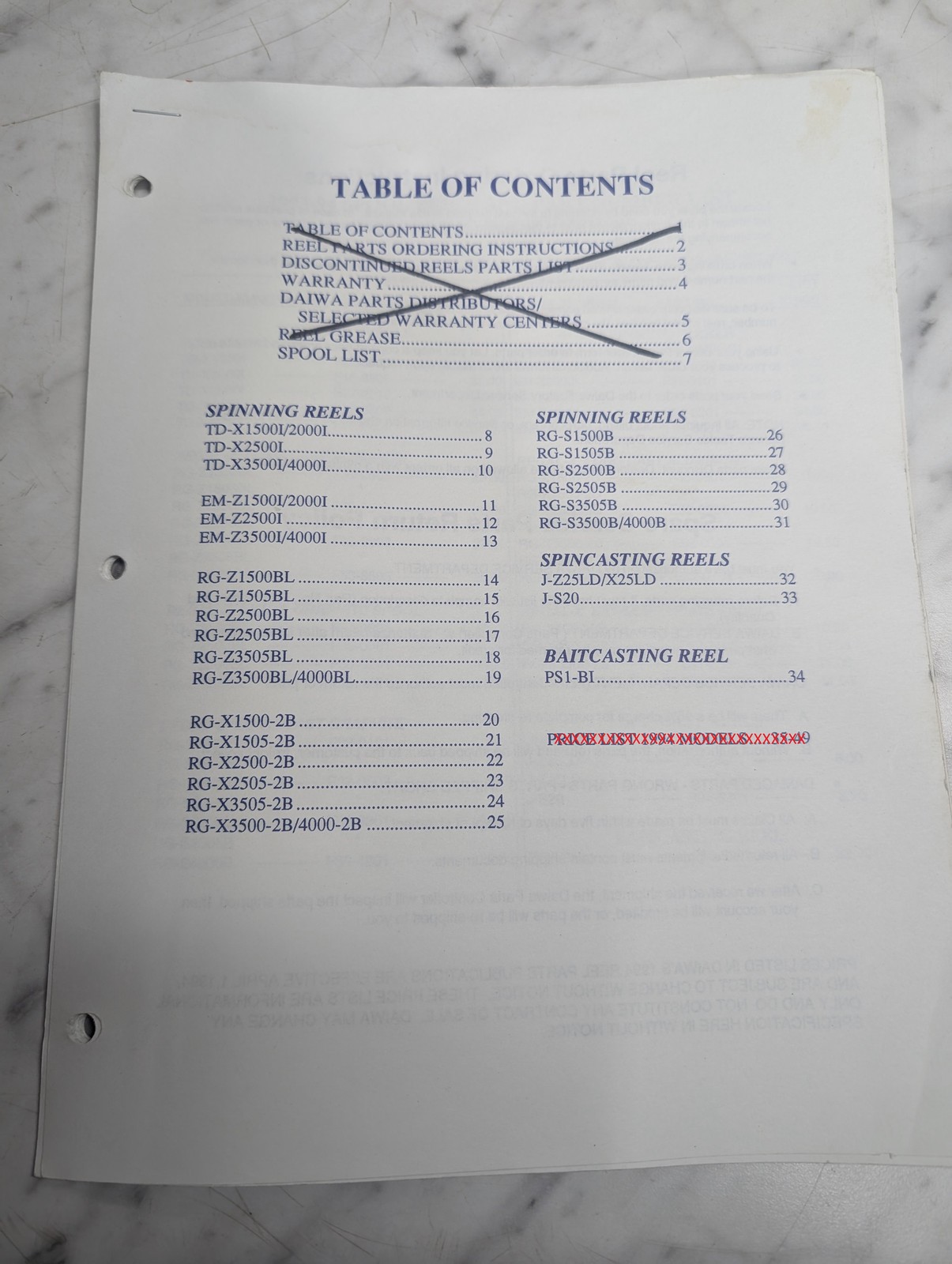 Daiwa Fishing Reels All Models Schematic Parts List Book Catalog Manual 1994