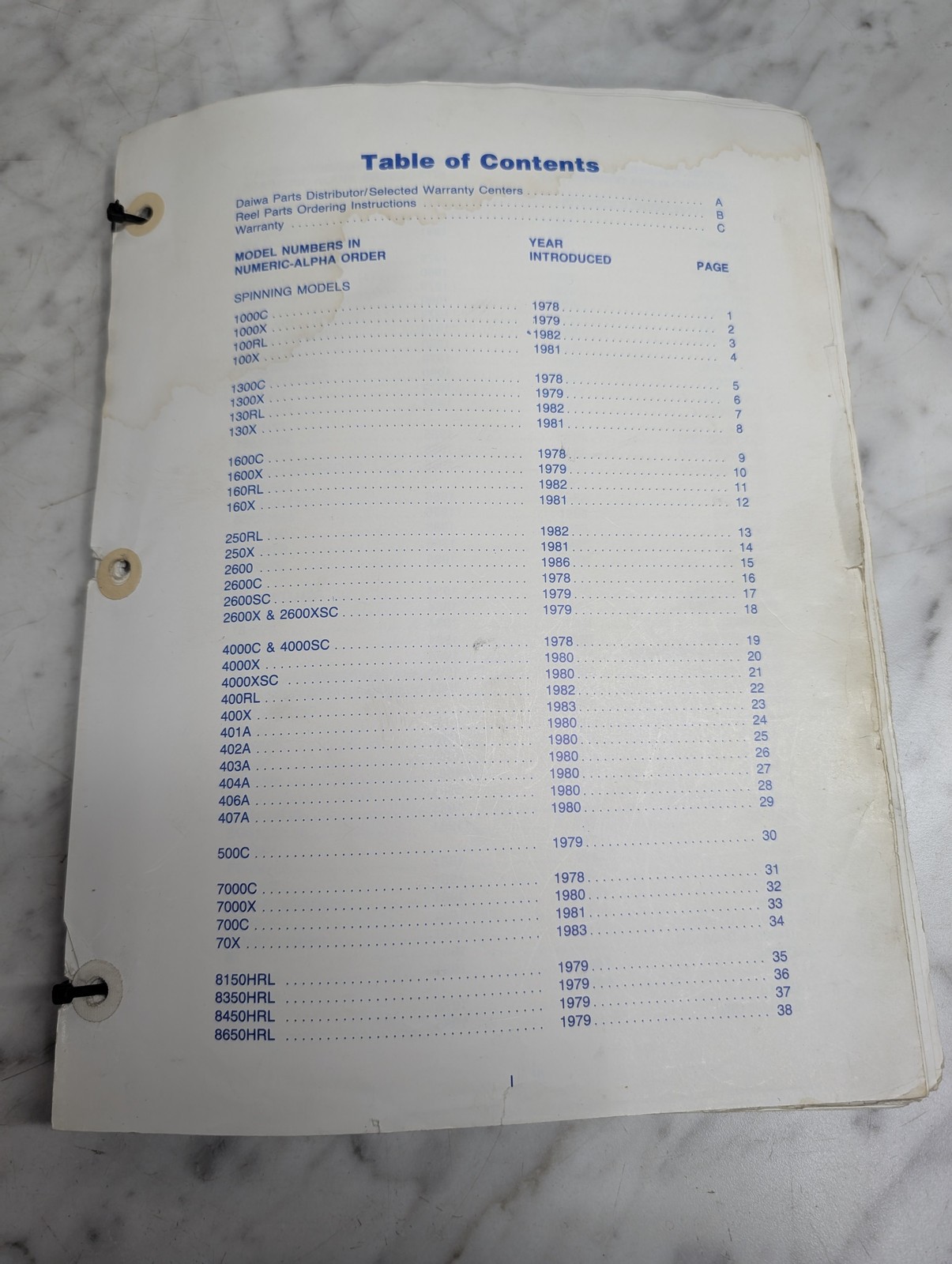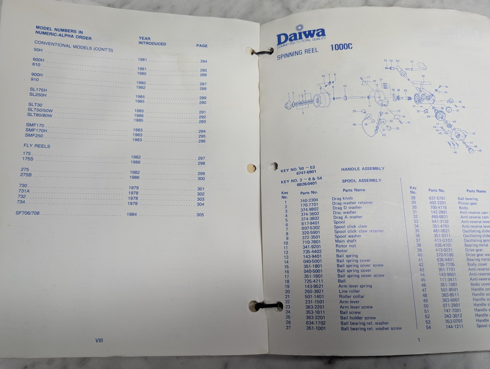 Daiwa Repair Service Parts List Catalog Manual Book Fishing Reels Diagrams