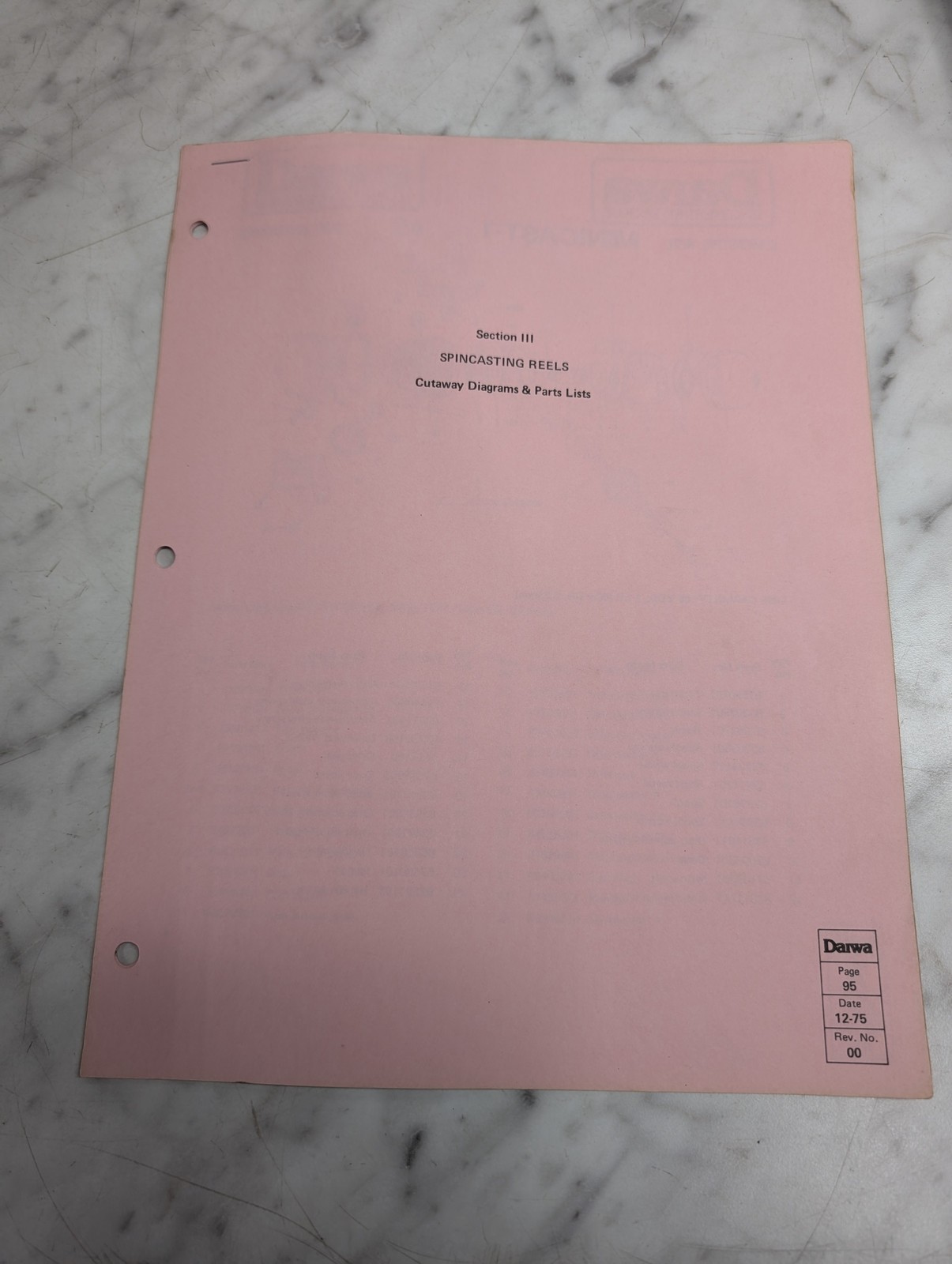 Daiwa Repair Service Parts List Catalog Manual Book Fishing Spincast Reel 1977