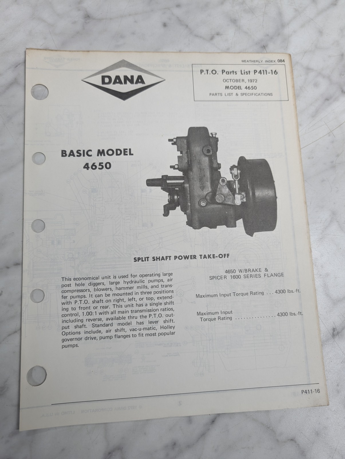 Dana Chelsea Repair/Service Parts List Catalog Manual Model 4650 Pto 1972