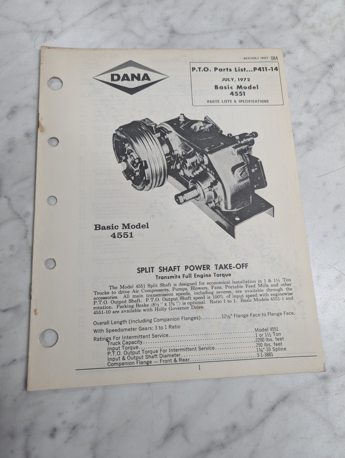 Dana Service/Repair Parts List Catalog Manual Basic Model 4551 1972 Pto