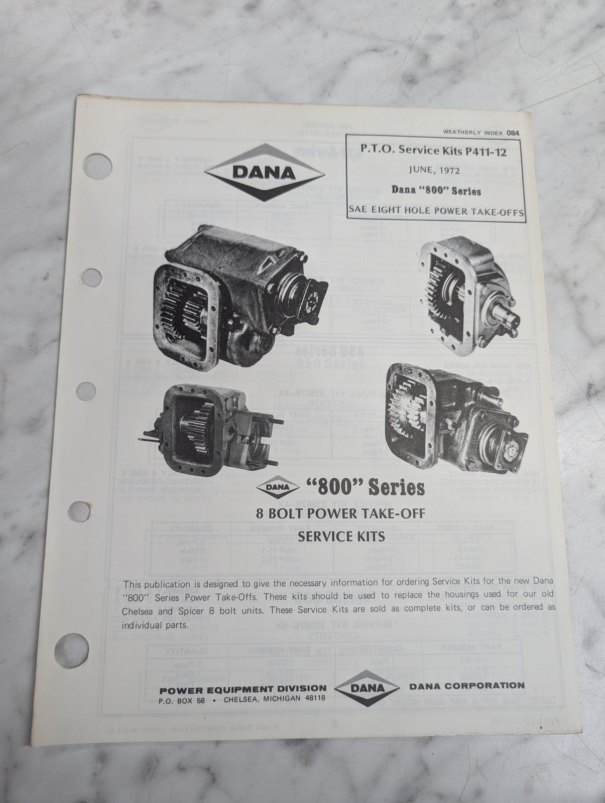 Dana Service/Repair Parts List Catalog Manual Model 800 Series Pto 1972