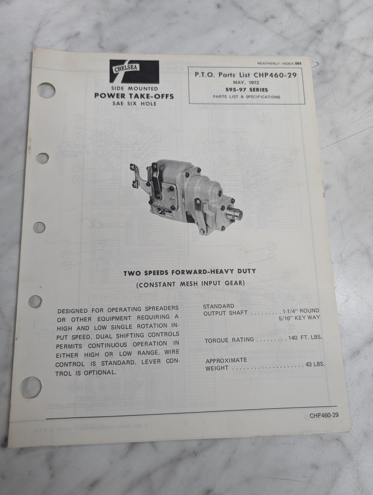 Dana Service/Repair Parts List Catalog Manual Model S95-97 Series Pto 1972