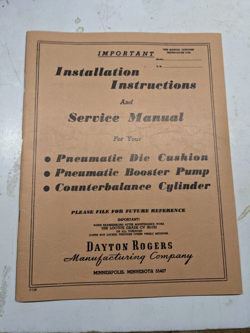 Dayton Rogers Service Repair Manual 1973 Booster Pump Counterbalance Cylinder