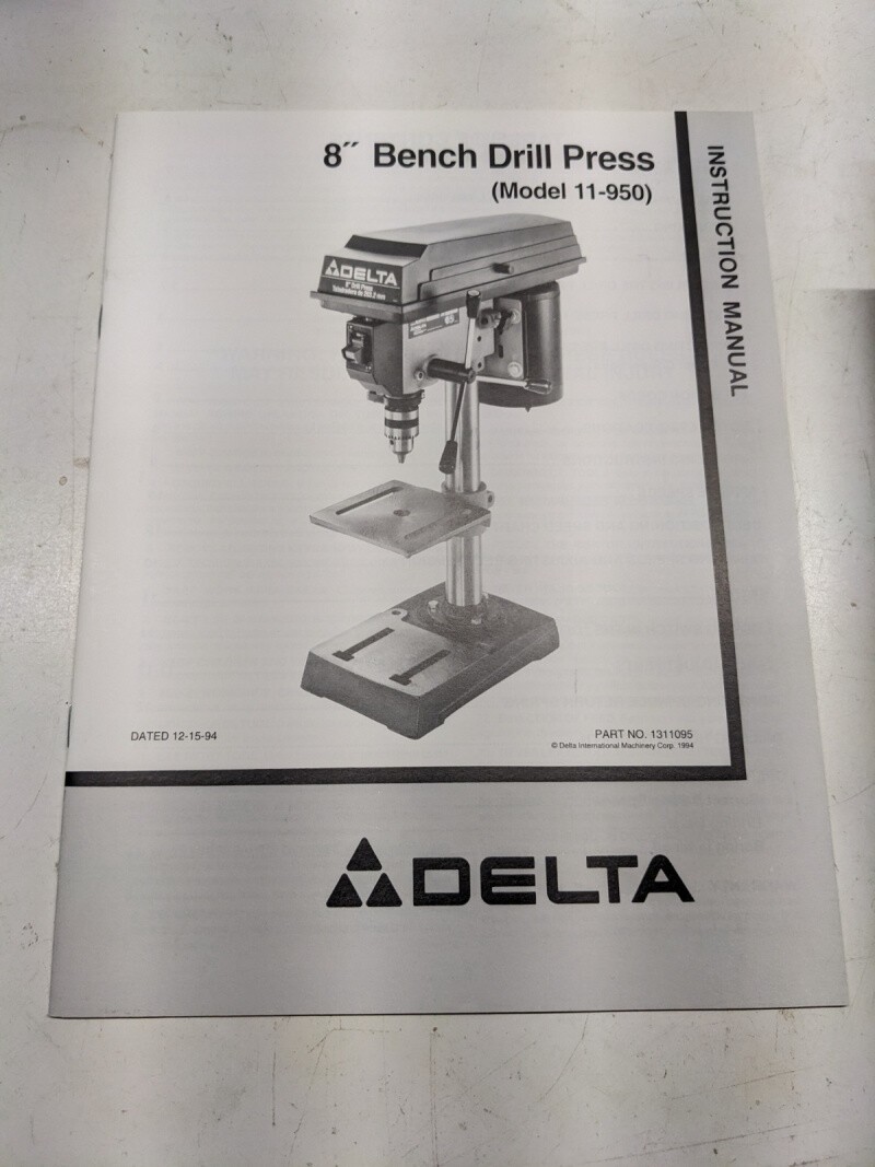Delta 8” 94 1311095 Bench Drill Press 11-950 Model Instruction Operation Manaul