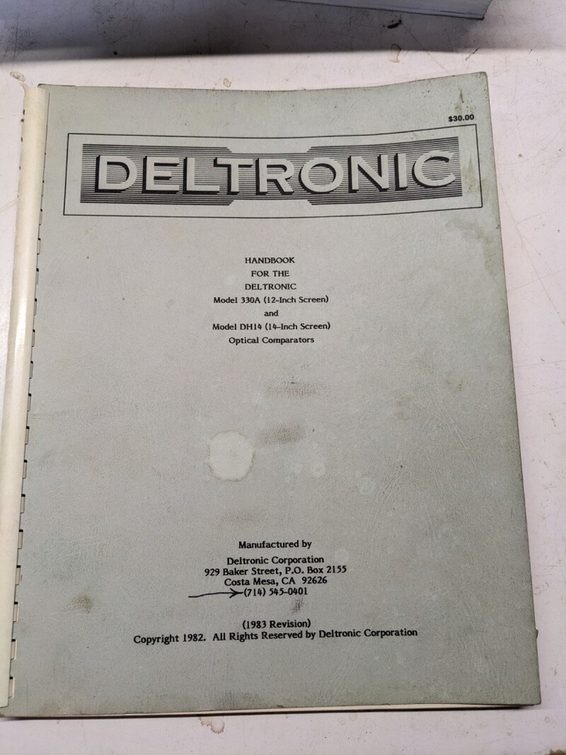 Deltronic Handbook 331 Dh14 Optical Comparators 1982 Operator Manual Instruction