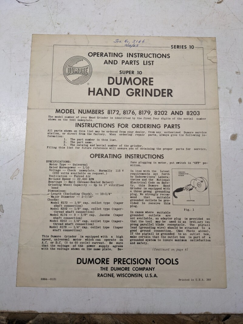 Dumore Super 10 Part List Operating Instruction Manual Model 8172 8176 8179 8202