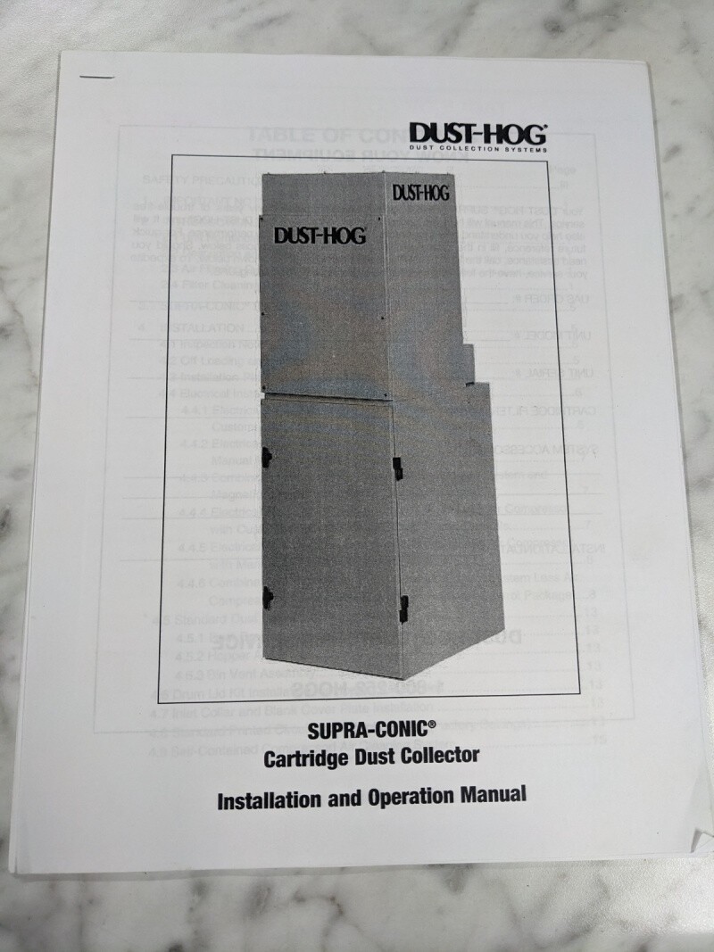 Dust-Hog Collection System Supra-Conic Cartridge Operator Service Parts Manual