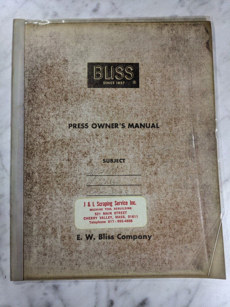 E W Bliss Operator Service Manual Parts List Inclinable Press A-110-1 Copy