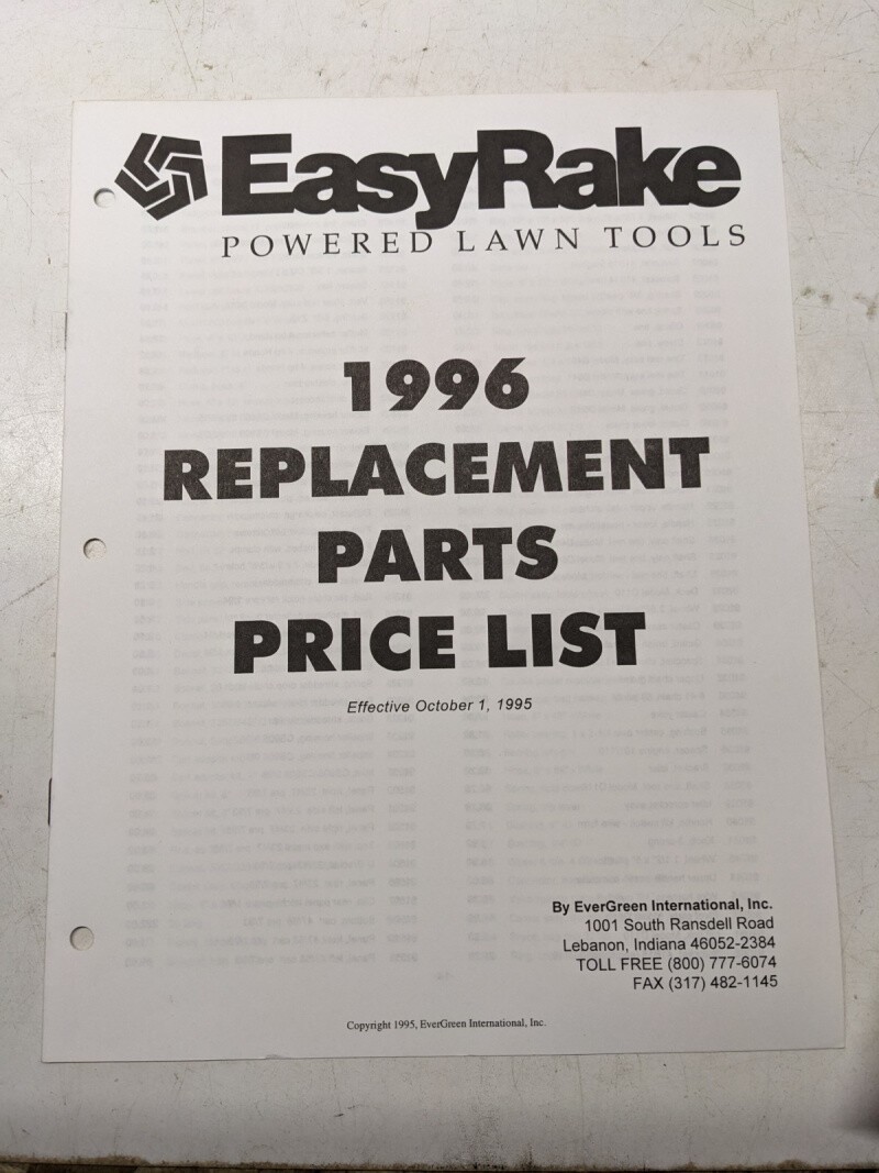 Easyrake Power Lawn Tools 1996 Replacement Parts Price List 1995 Sales Brochure