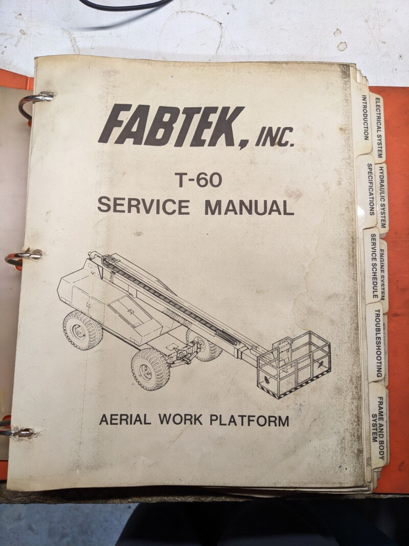 Fabtek Service Repair Manual T-60 1985 Aerial Work Platform Shop Book