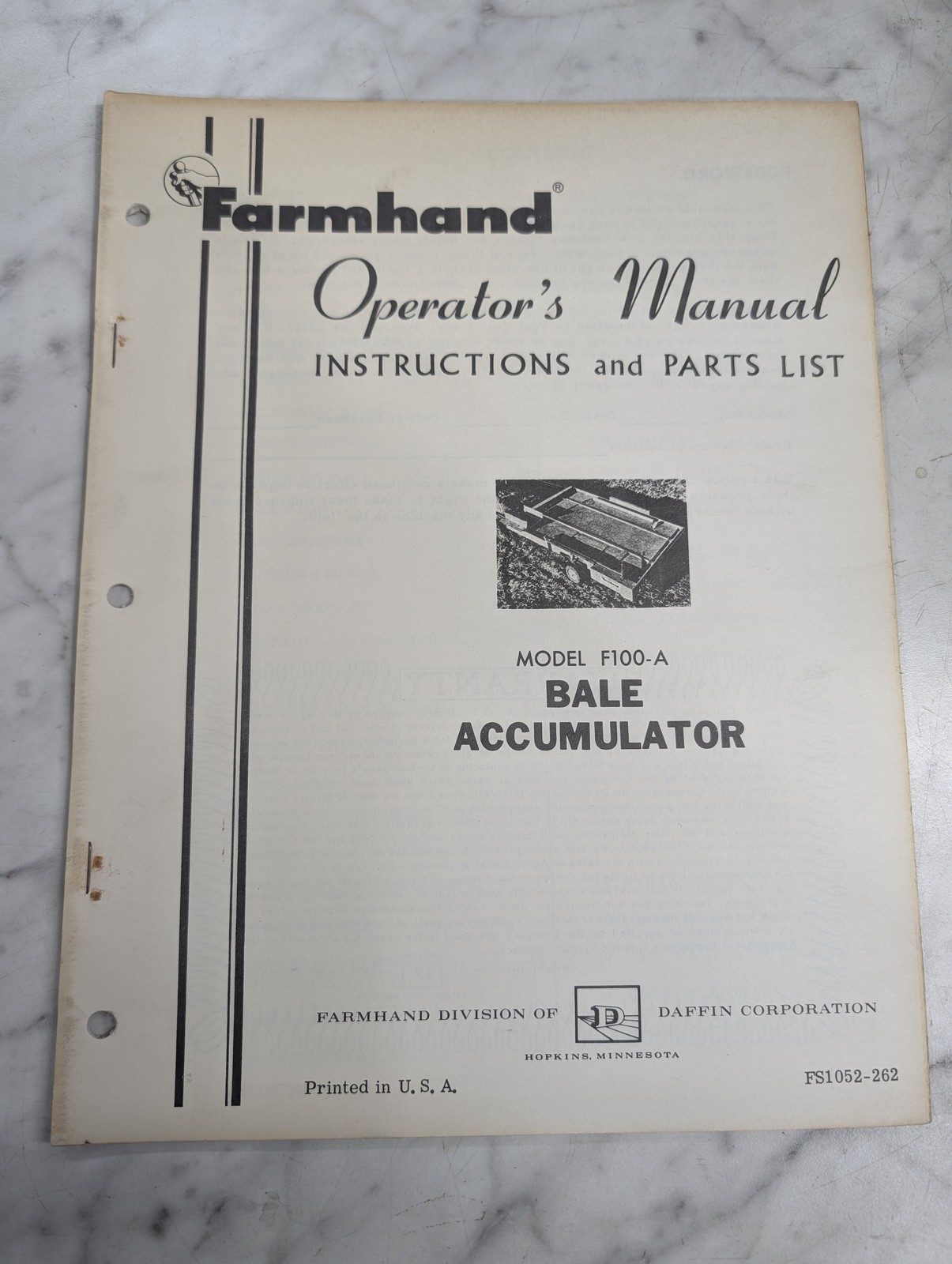 Farmhand Operator’S Service Manual & Parts List Model F100-A Bale Accumulator