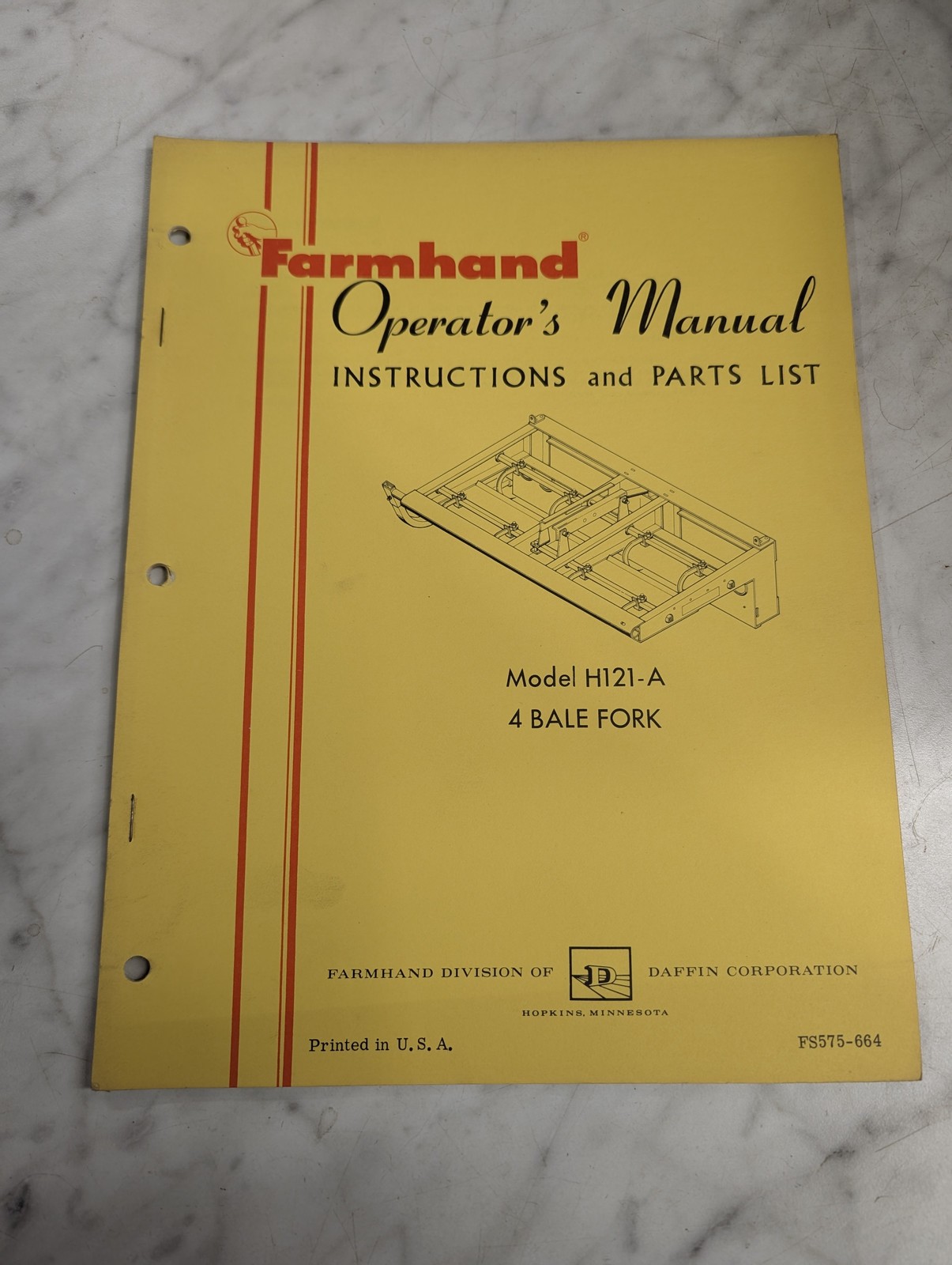Farmhand Operator’S Service Manual & Parts List Model H121-A 4 Bale Fork