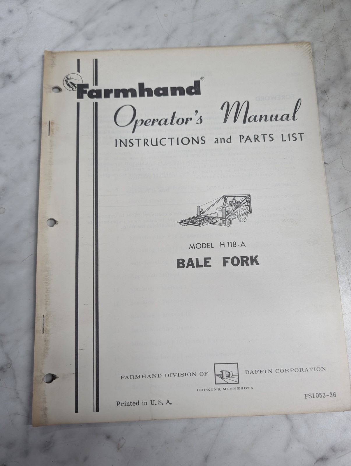 Farmhand Operator’S Service Manual & Parts List Model H18-A Bale Fork