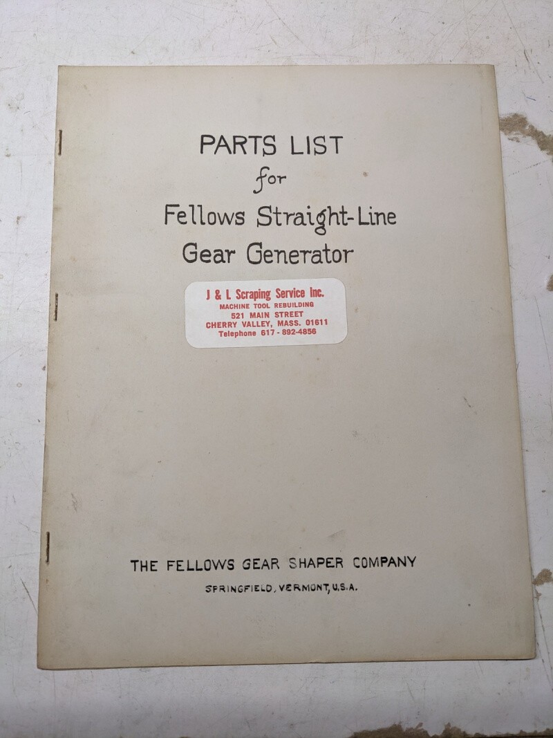 Fellows Co Service Parts List Manual Catalog Straight Line Gear Generator