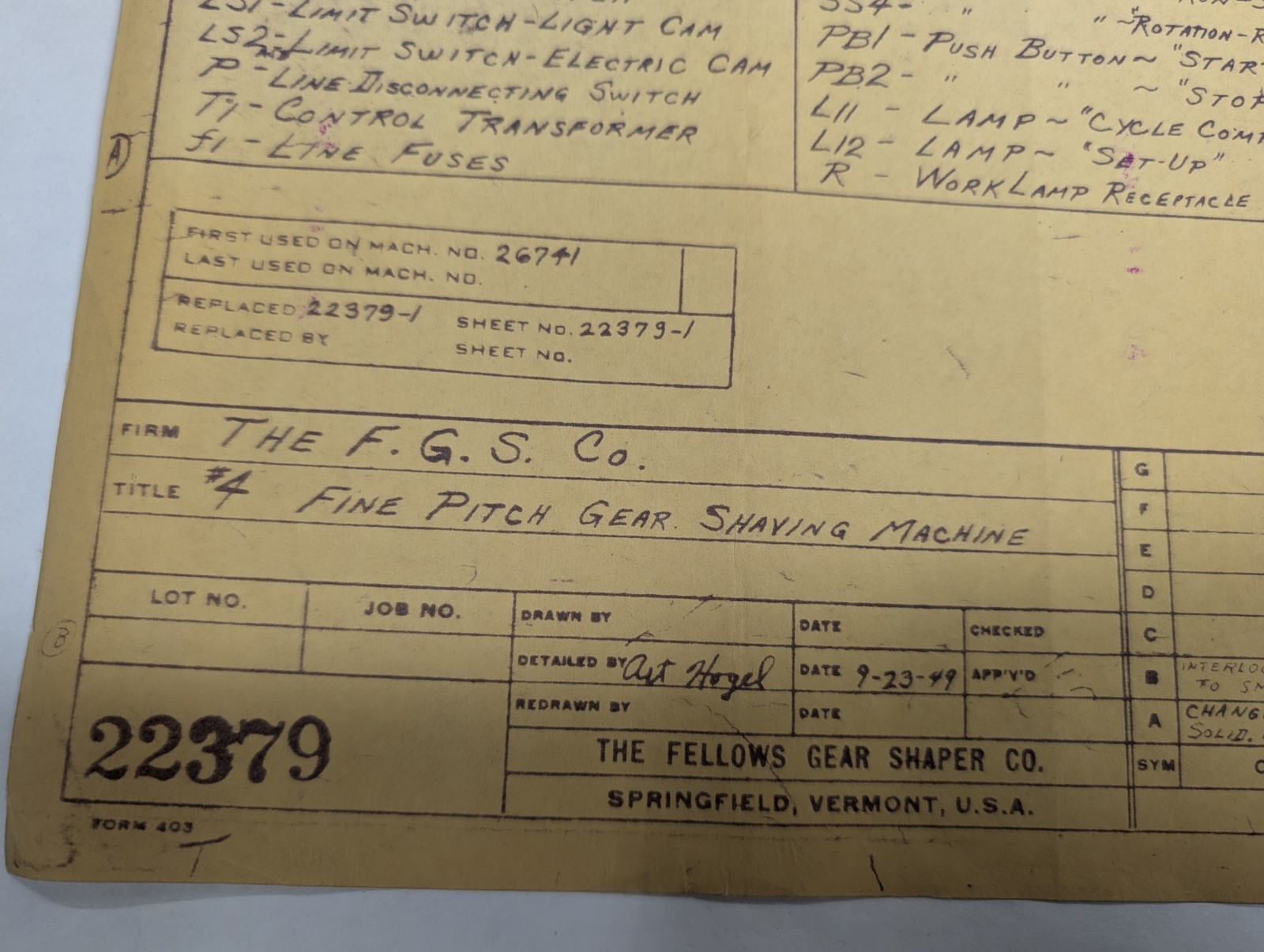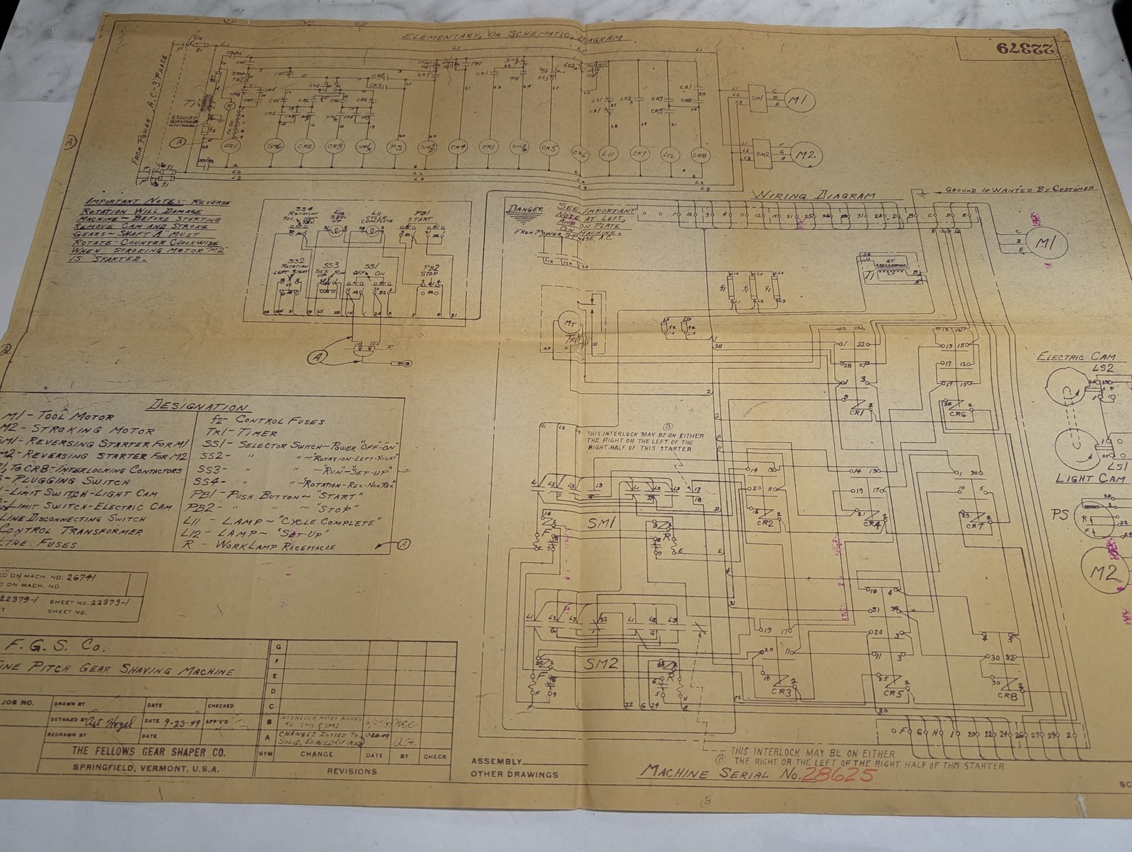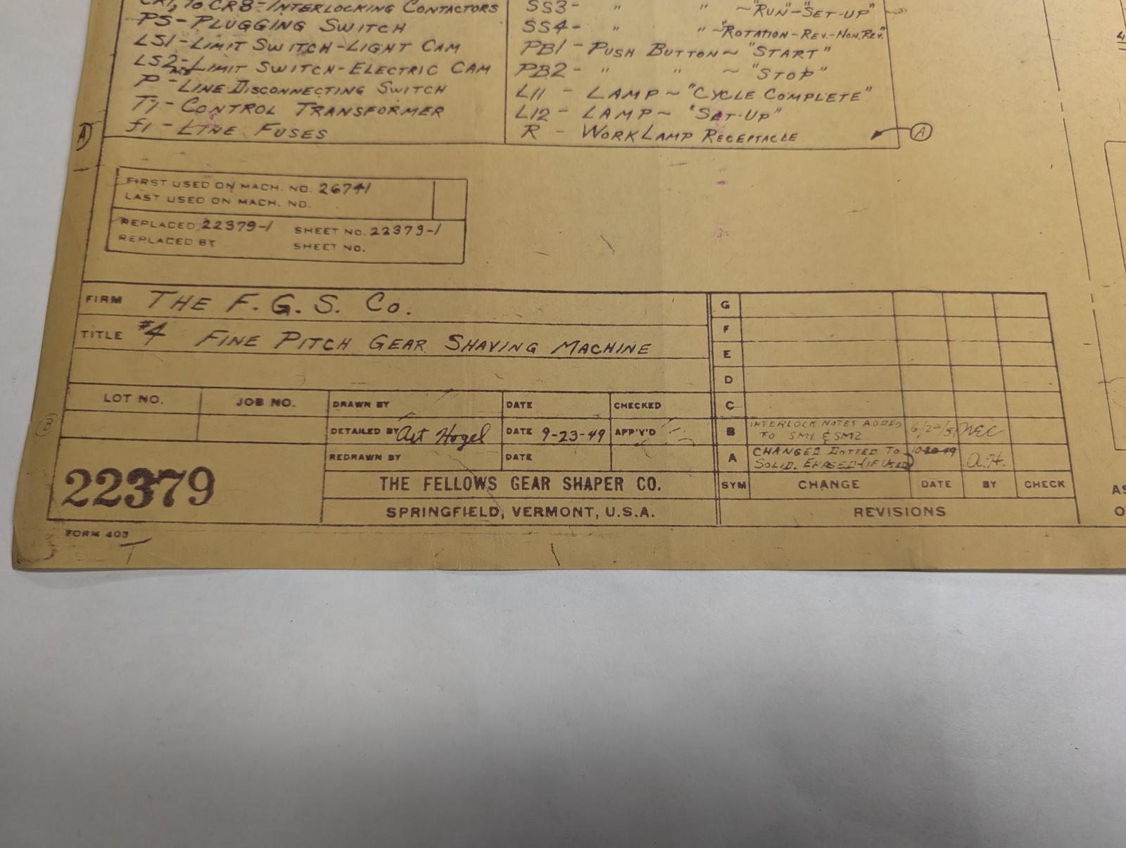Fellows Gear Shaper 4” Fine Pitch Wiring Diagram Drawing 22379 Schematic Print