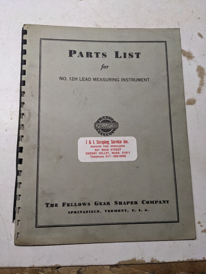 Fellows Gear Shaper Co Service Parts List Manual Catalog #12H Lead Measuring