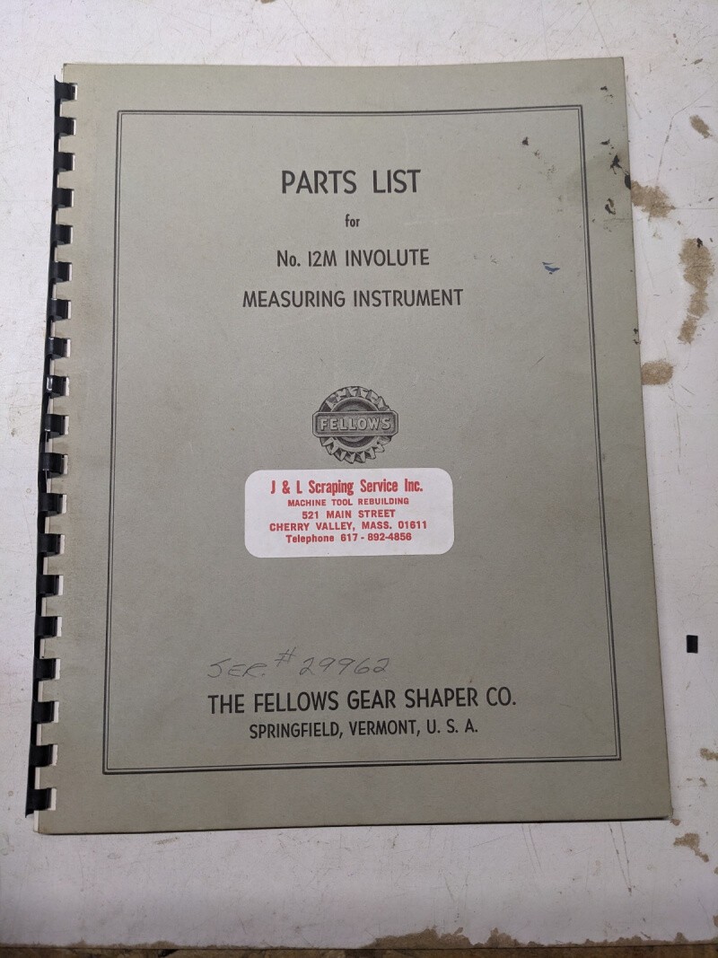 Fellows Gear Shaper Co Service Parts List Manual Catalog #12M Involute 1954