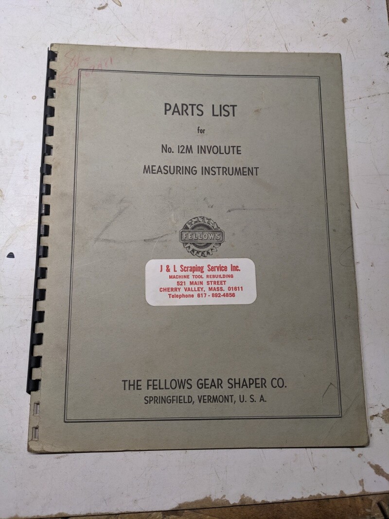 Fellows Gear Shaper Co Service Parts List Manual Catalog No 12M Involute 1954