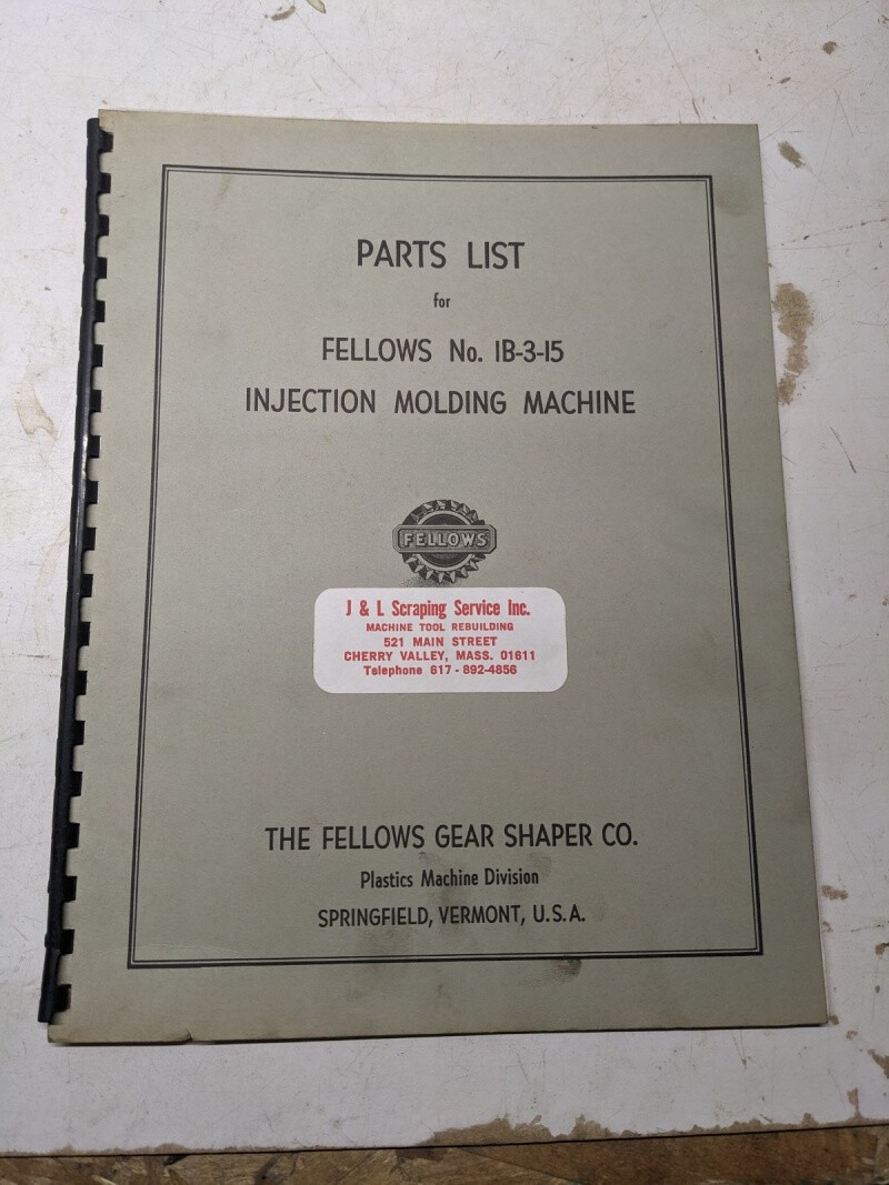 Fellows Gear Shaper Co Service Parts List Manual Ib-3-15 Injection Molding Mach