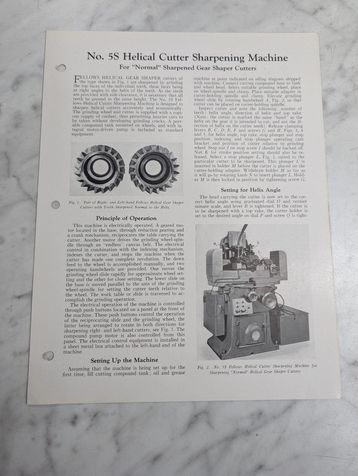 Fellows Information Instruction Literature #5S Helical Cutter Sharpening Mach