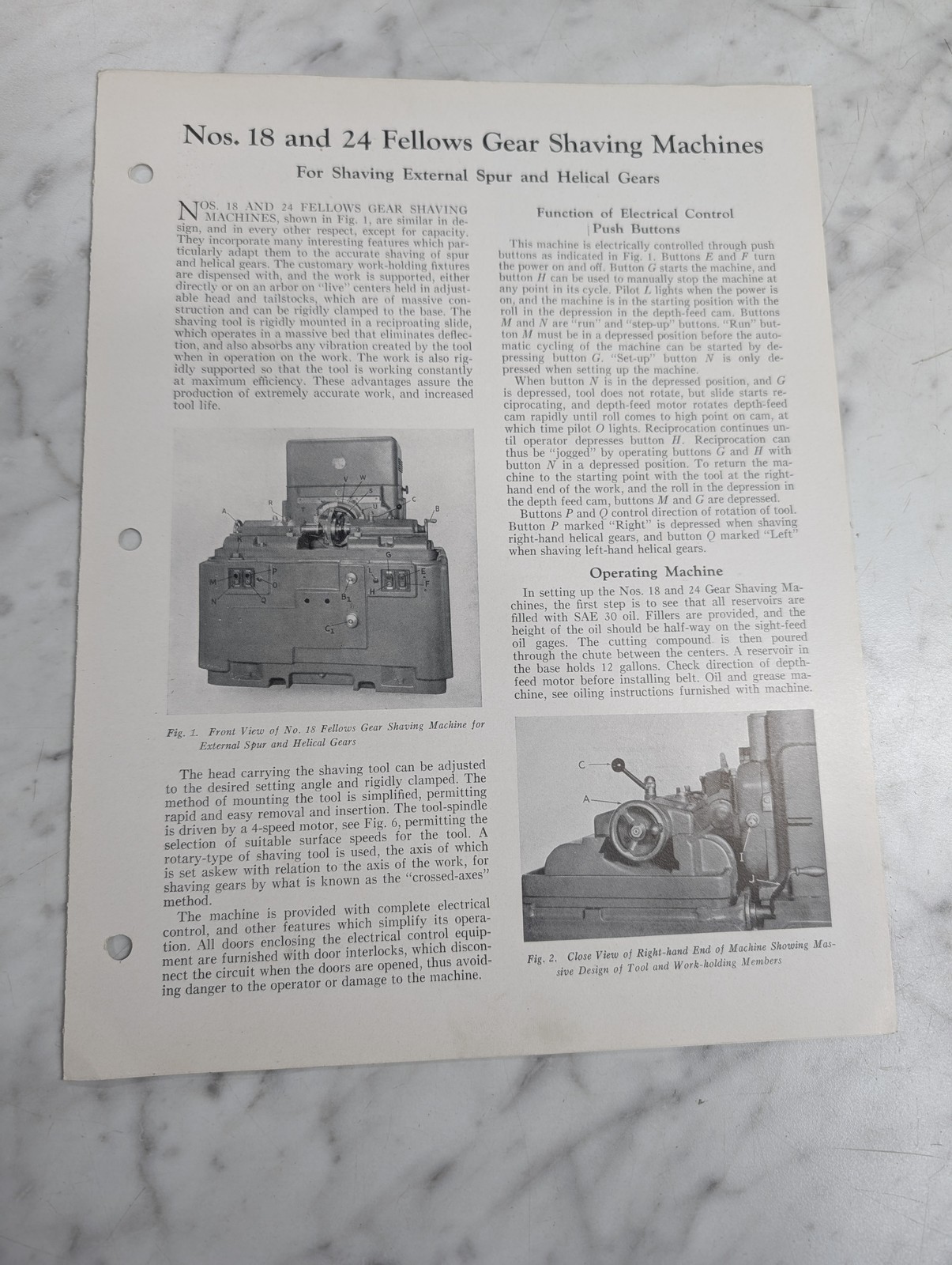Fellows Information Instruction Literature Manual #18 24 Gear Shaving Machines