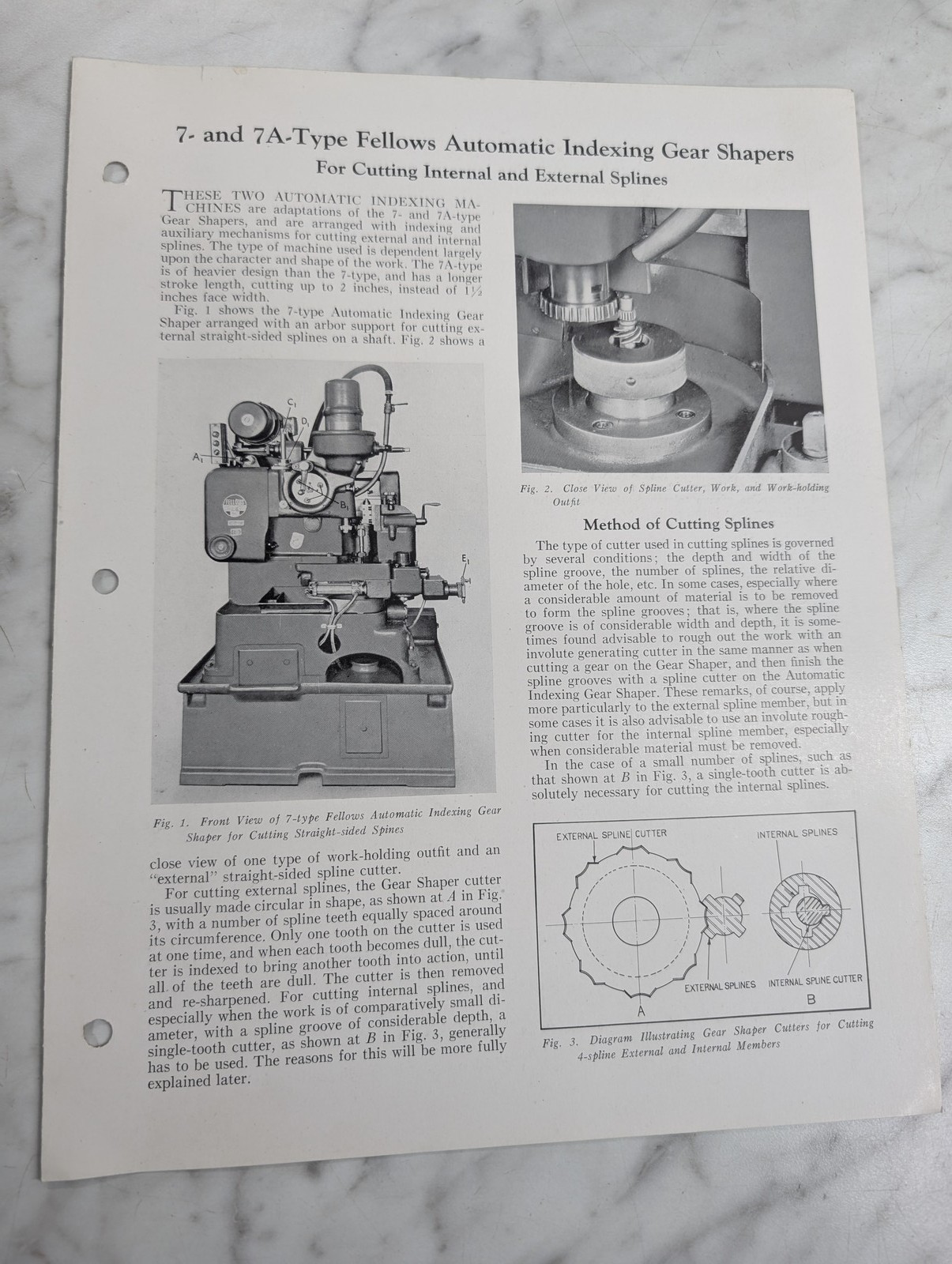 Fellows Information Instruction Literature Manual 7A Auto Index Gear Shapers