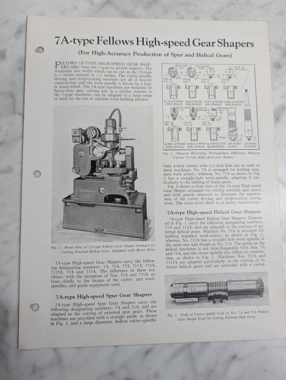 Fellows Information Instruction Literature Manual 7A Type Gear Shapers