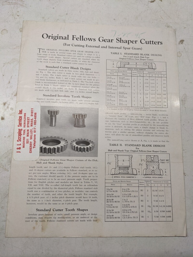 Fellows Machining Instructions Gear Shaper Cutters 1944