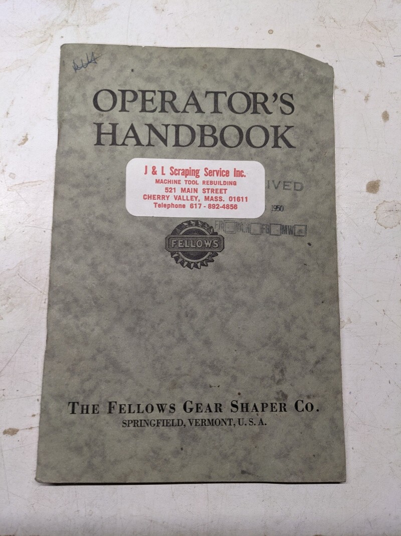 Fellows Operator Service Manual Handbook Gear Shaper #6 Type 1945 Machine