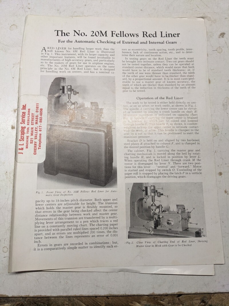 Fellows Sales Brochure Catalog Specifications Features #20M Red Liner Checking