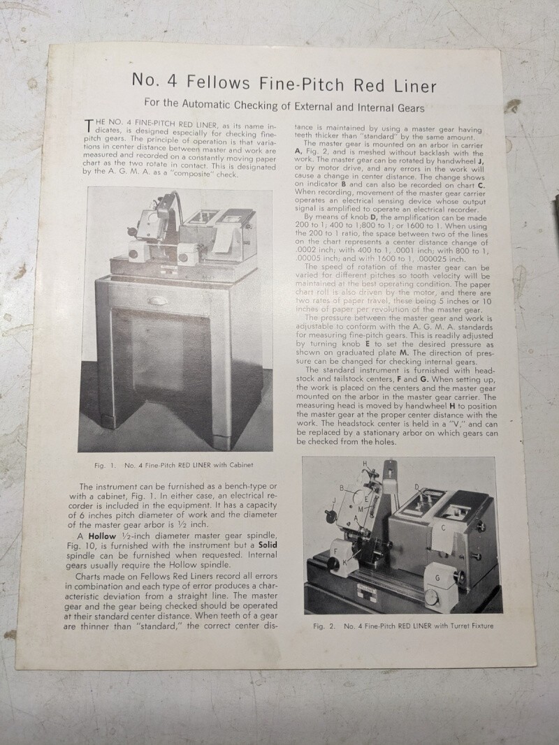 Fellows Sales Brochure Catalog Specifications Features #4 Fine Pitch Red Liner