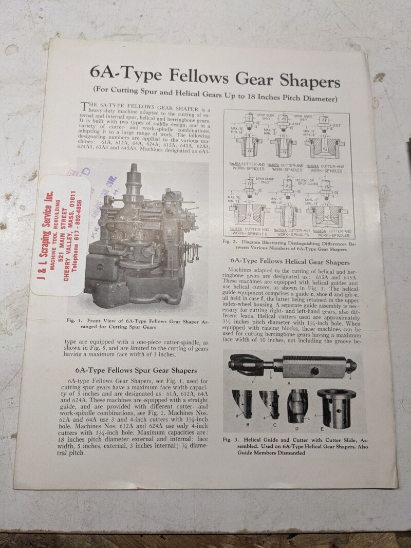 Fellows Sales Brochure Catalog Specifications Features #6A Gear Shapers