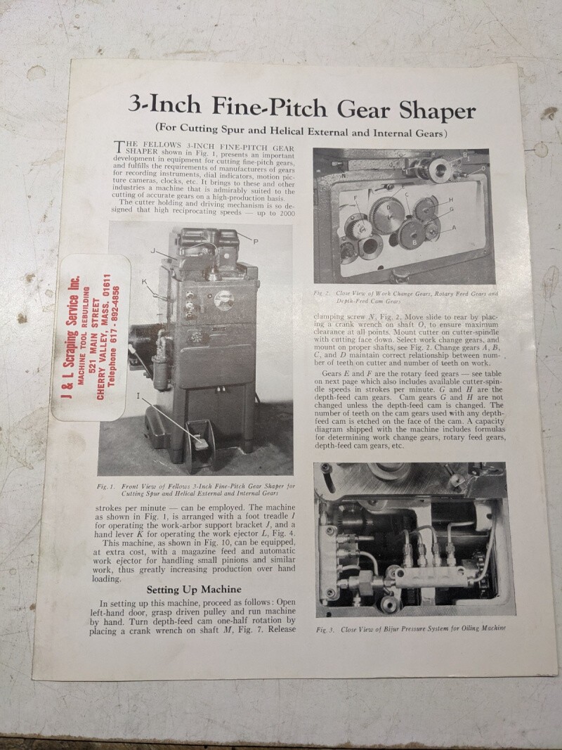 Fellows Sales Brochure Catalog Specifications Operation 3” Gear Shaper Machine