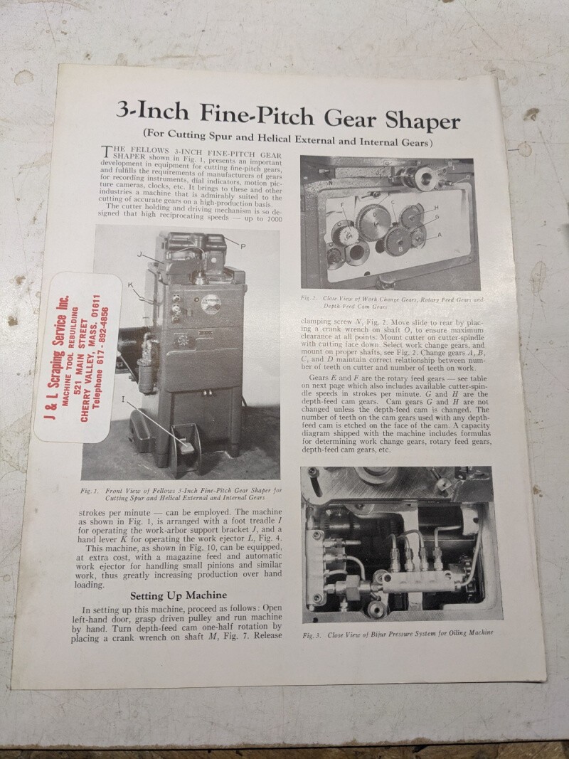 Fellows Sales Brochure Catalog Specifications Operation 3” Gear Shapers