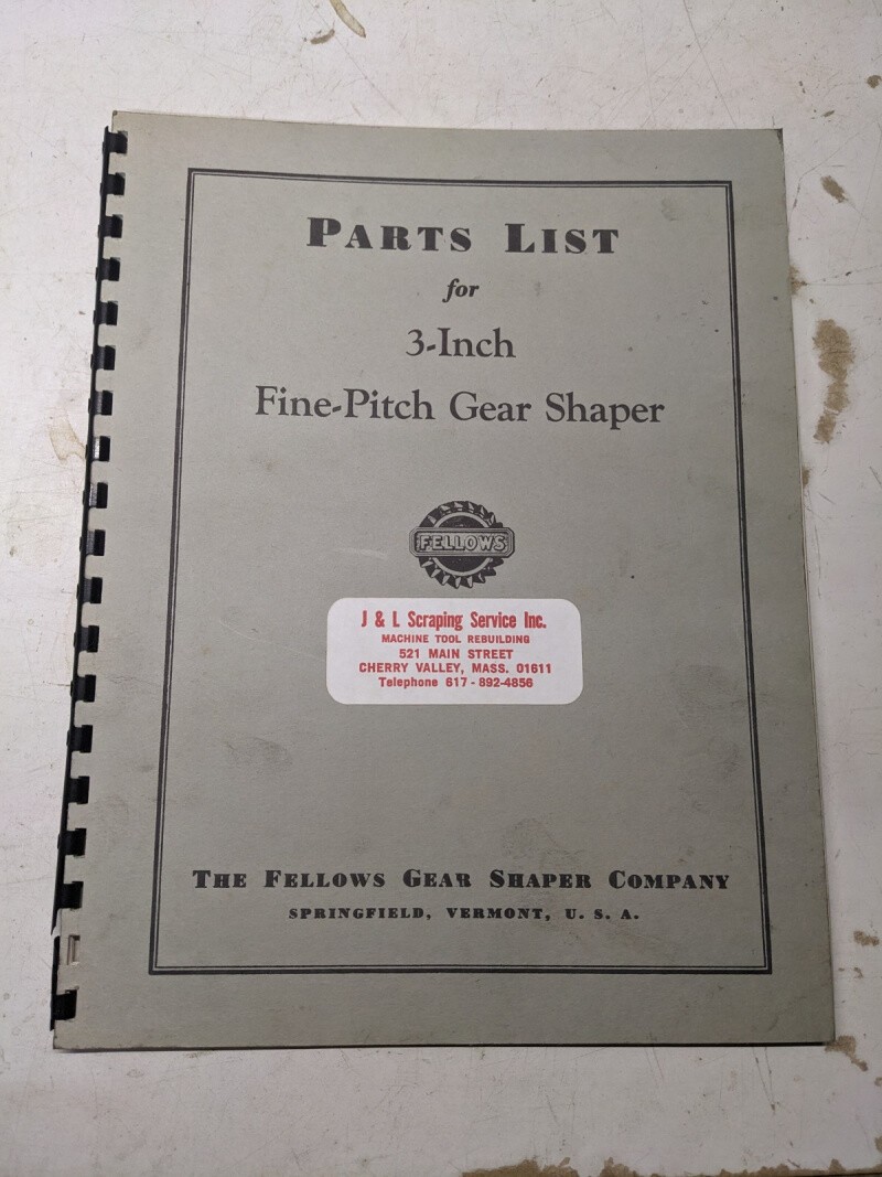 Fellows Service Parts List Manual Catalog 3” Fine-Pitch Gear Shaper 1957